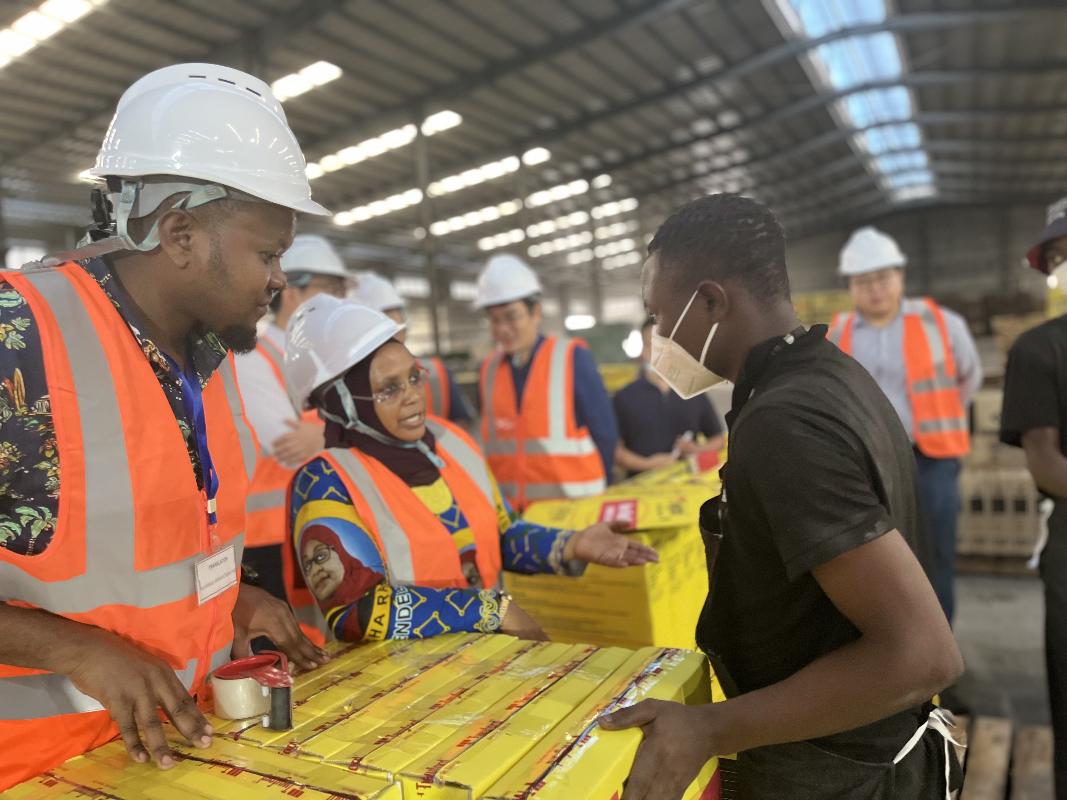 At 13:30 on June 8, 2023, Ashatu Kijaji, the Minister of Tanzania Ministry of Trade and Industry, led a delegation to visit the Tanzania ceramic factory. Yu Shankai, the director of New Project Preparation Center in Sunda Group, Zhang Wan, the general manager of Tanzania ceramic factory and Zhang Qi, the general trading manager of Tanzania accompanied the visit.